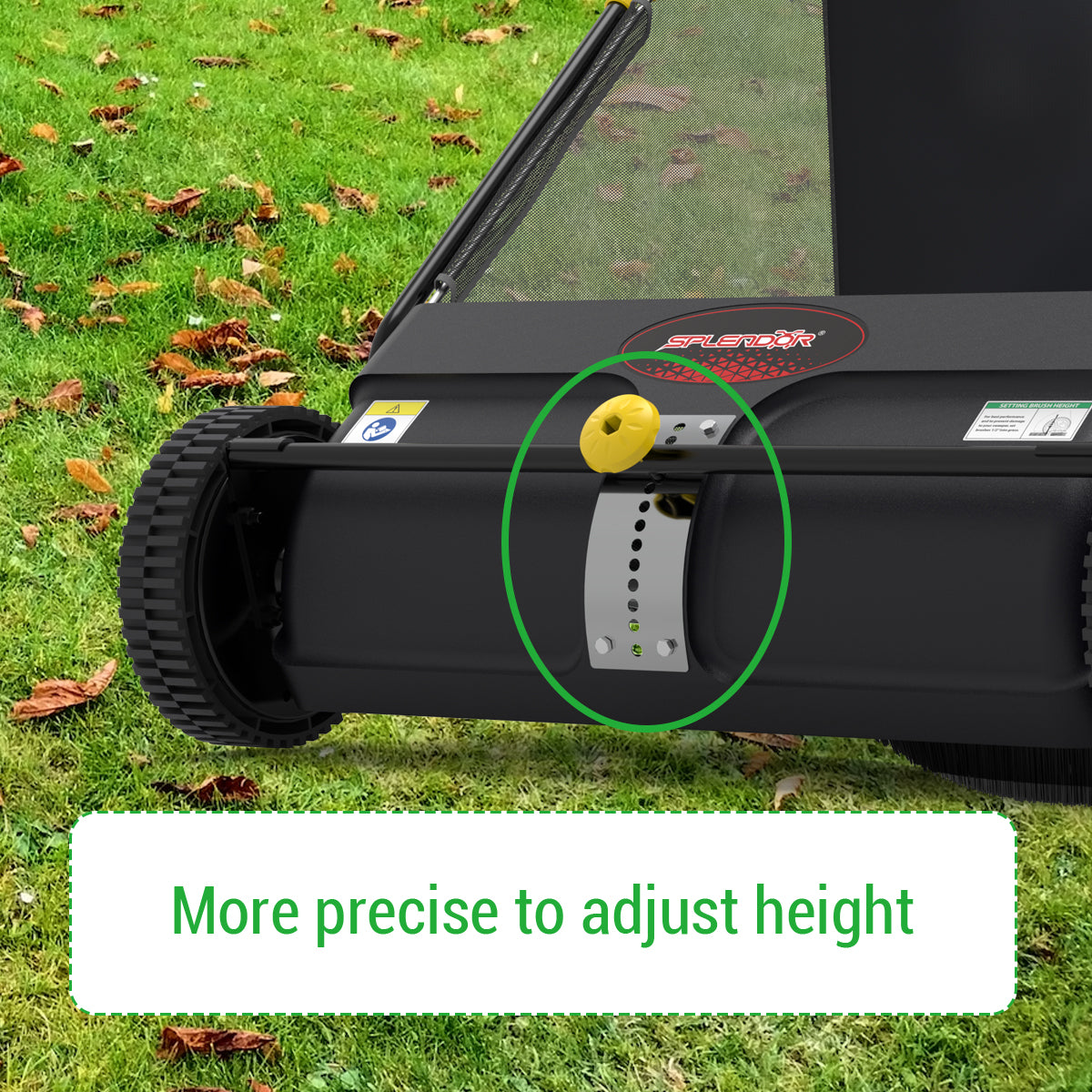 - 【HEAVY-DUTY STAINLESS STEEL STRUCTURE】Splendor lawn sweeper is Constructed of Super Sturdy Steel, High quality Wheels Also Allow for Easy Nonstop Sweeping & Reliable All-Terrain Performance.